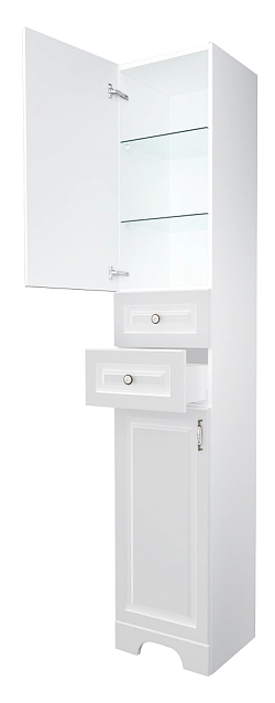 Классический пенал со множеством закрытых полок, который станет универсальным дополнением любой ванной комнаты благодаря лаконичному дизайну и белому глянцевому корпусу из МДФ. Это прекрасный образец практичности, функциональности и современной эстетики, который прослужит долгие годы. Дополнительное преимущество пенала - его возможность гармонично дополнять уже существующую обстановку ванной комнаты или становиться частью абсолютно нового дизайна. Комфорт и удобство его использования обеспечиваются качественной и надежной фурнитурой.