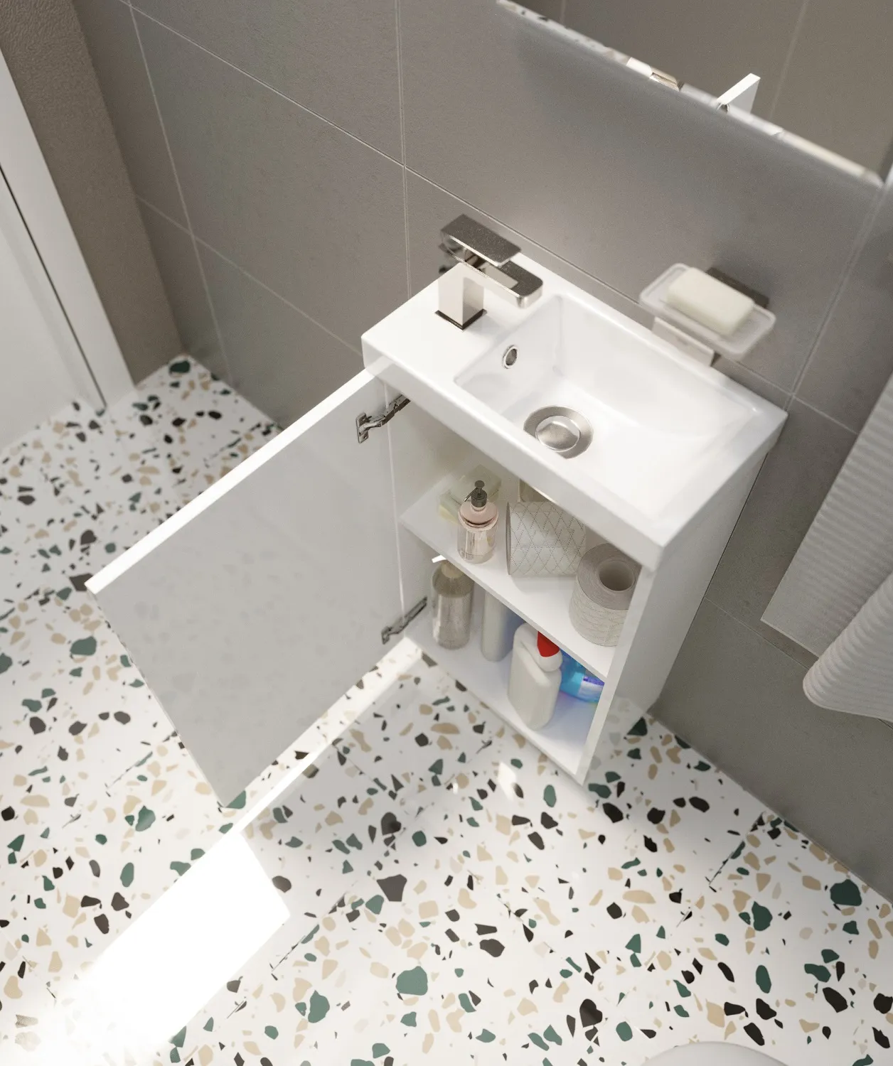 Компактная тумба, корпус которой покрыт пленкой ПВХ для дополнительной защиты от воздействия влаги и сохранения привлекательного, презентабельного внешнего вида. Это безупречный вариант для небольших ванных комнат, который позволяет с удобством организовать хранение косметики, бытовой химии и других вещей даже в условиях дефицита пространства. Это модель, с выбором которой просто невозможно ошибиться. Стильная и универсальная, она будет одинаково уместна как в классических, так и в современных и эклектичных интерьерах вне зависимости от их цветовой гаммы.Характеристики: