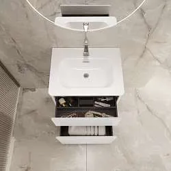 Тумба с раковиной Bumble - поистине уникальная модель, которая первой в России представляет вниманию покупателей раздвижную раковину. Она особенно актуальна для небольших помещений - с одной стороны позволяет экономить пространство, с другой - при необходимости пользоваться полноценной большой раковиной. Выдвижные ящики идеальны для комфортного хранения всего необходимого, а стильный и лаконичный дизайн без лишней фурнитуры полностью соответствует всем актуальным тенденциям.Характеристики: