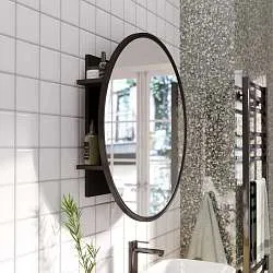 Стильное зеркало с функциональной рамой, в котором воплощены все самые актуальные идеи для декора интерьеров ванных комнат. Отсутствие лишних деталей, четкие линии и лаконичная прямоугольная форма делают его универсальным аксессуаром для любого пространства в современной или эклектичной стилистике. Также модель имеет преимущества в виде дополнительной полки, подсветки и расположенных на дне выключателя и розетки. Благодаря зеркальному полотну из серебряной амальгамы французского или бельгийского производства срок службы зеркала значительно увеличивается.Характеристики: